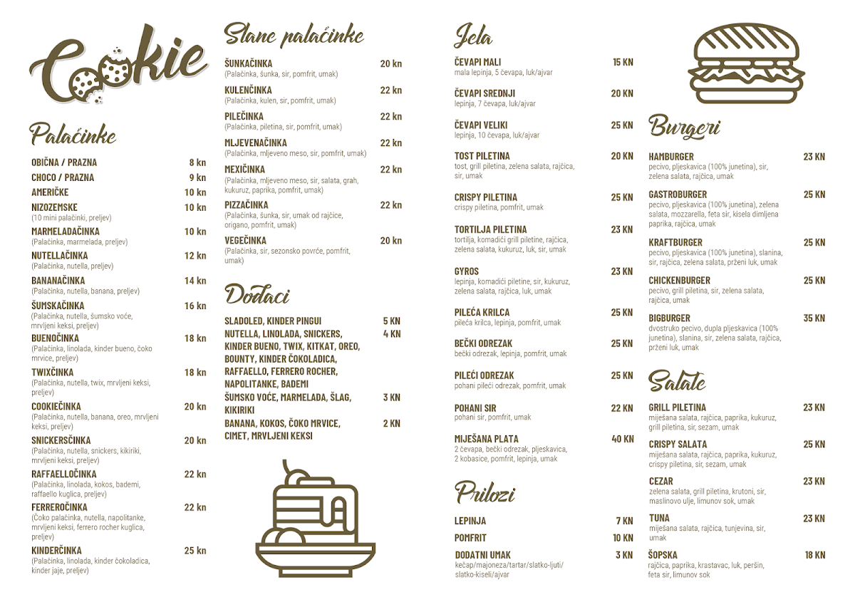 Welcome to Cookie Restoran, a hidden gem located in the heart of Kutina, Croatia. This charming eatery specializes in a wide assortment of pancakes, offering both sweet and savory options that cater to all tastes. With its minimalistic ambiance, Cookie Restoran creates a cozy atmosphere, perfect for families and friends alike.